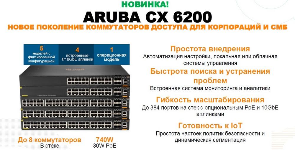 Коммутаторы серии Aruba CX 6200 — это семейство стекируемых коммутаторов доступа, идеально подходящих для филиалов и кампусов предприятий, а также для малых и средних предприятий.